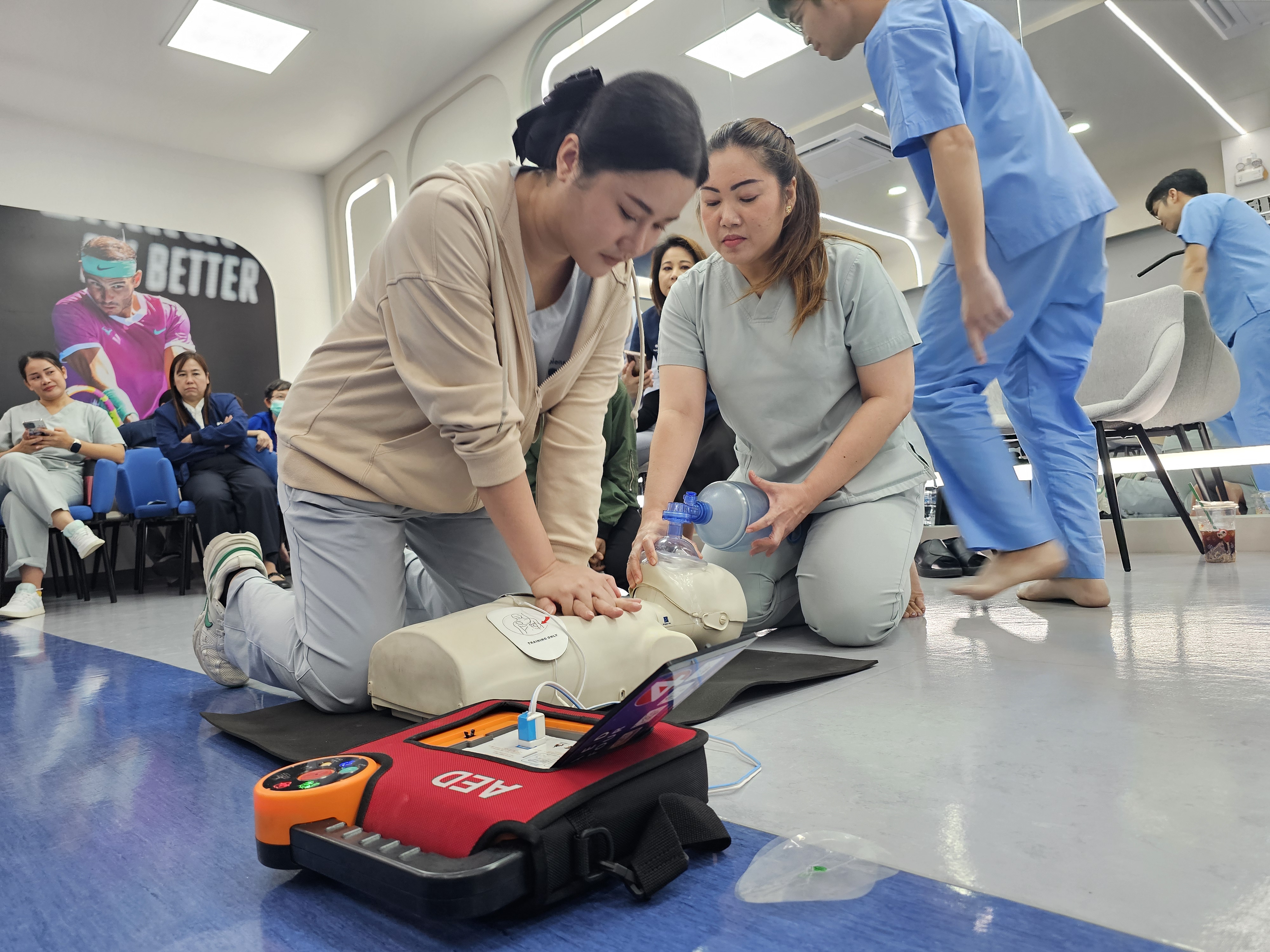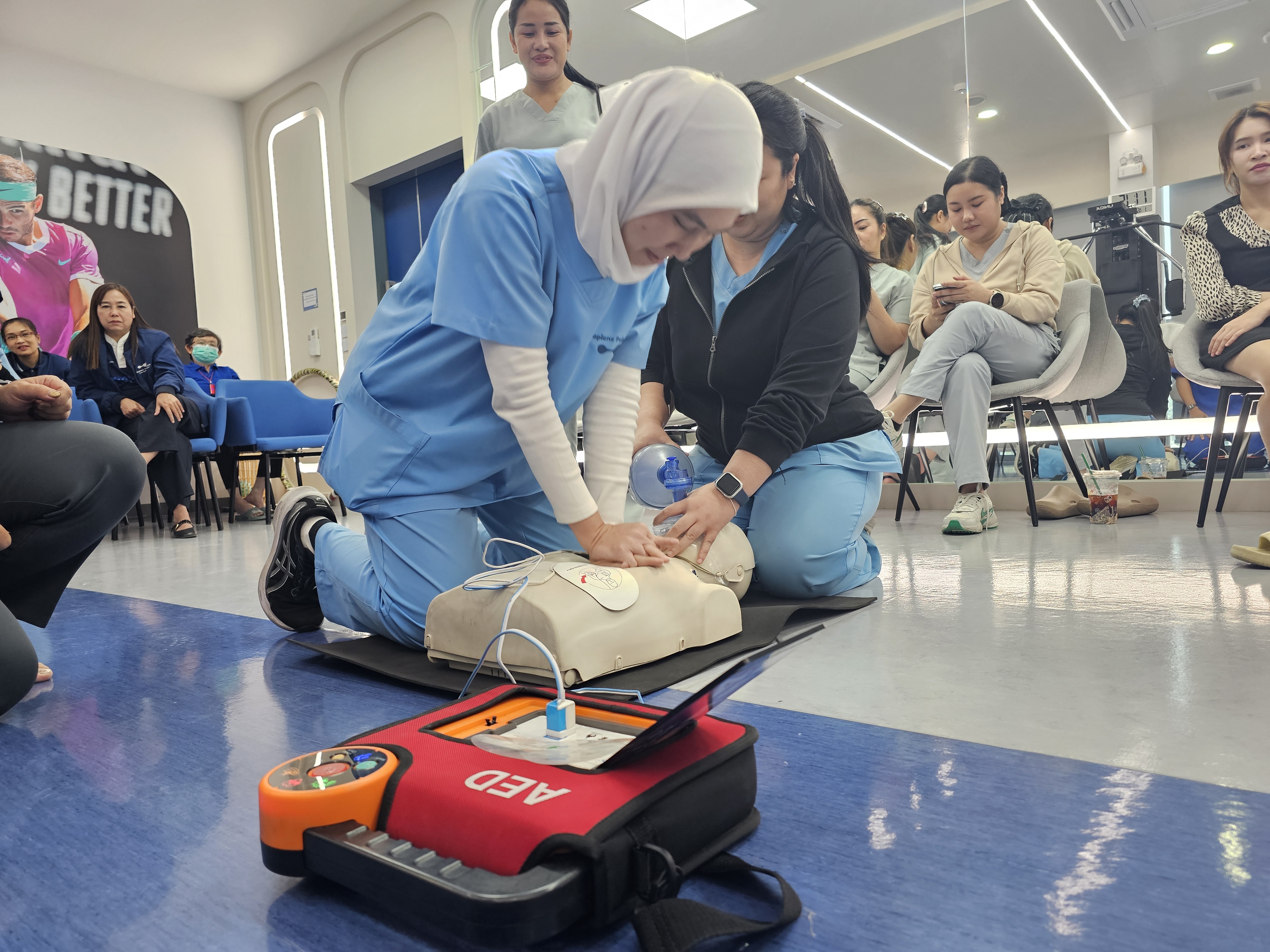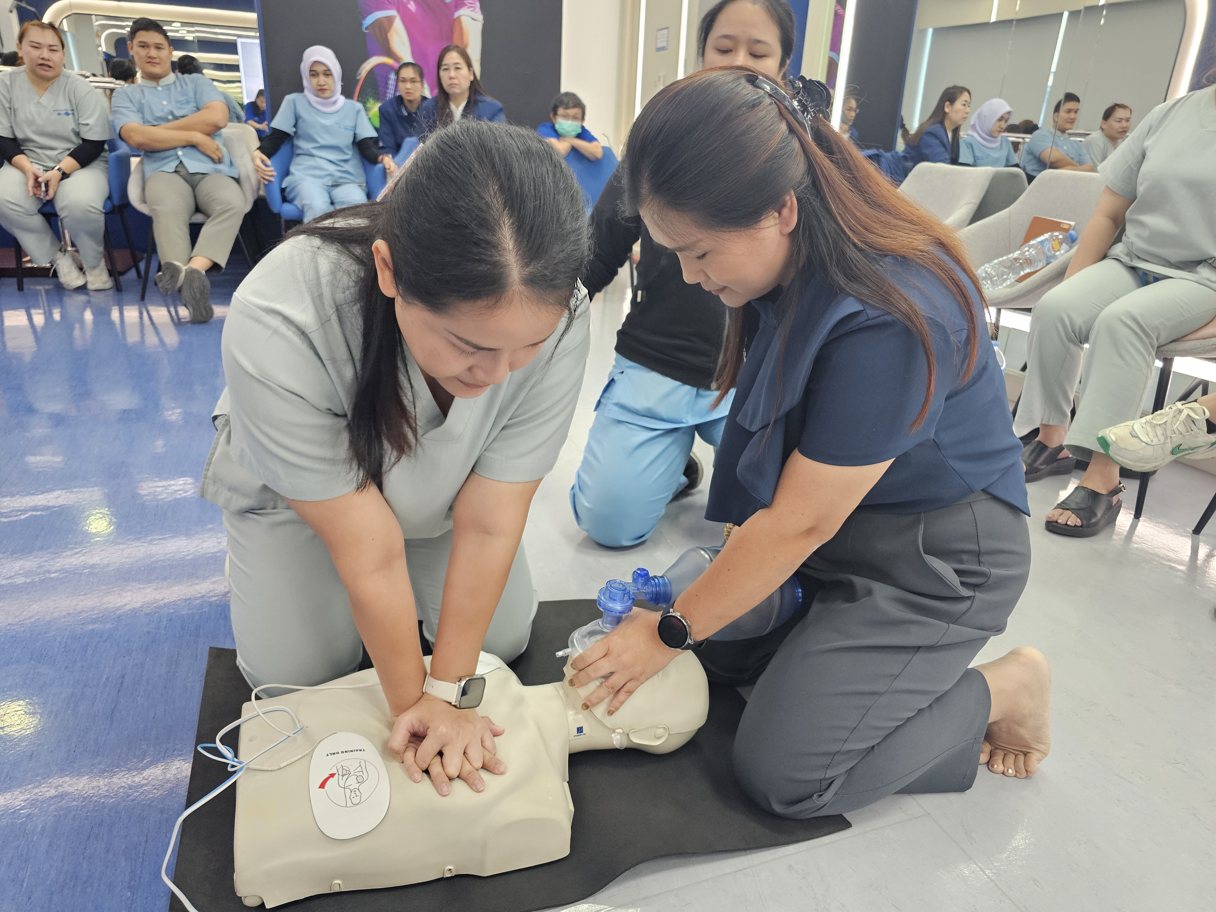 การอบรมในครั้งนี้มุ่งเน้นทั้งภาคทฤษฎีและภาคปฏิบัติ โดยมีวิทยากรผู้เชี่ยวชาญให้ความรู้เกี่ยวกับการประเมินสถานการณ์ฉุกเฉิน การขอความช่วยเหลืออย่างเหมาะสม และขั้นตอนการทำ CPR ตามมาตรฐาน เพื่อให้พนักงานสามารถนำไปประยุกต์ใช้ได้จริงในสถานการณ์ที่อาจเกิดขึ้นทั้งภายในโรงพยาบาลและในชีวิตประจำวัน