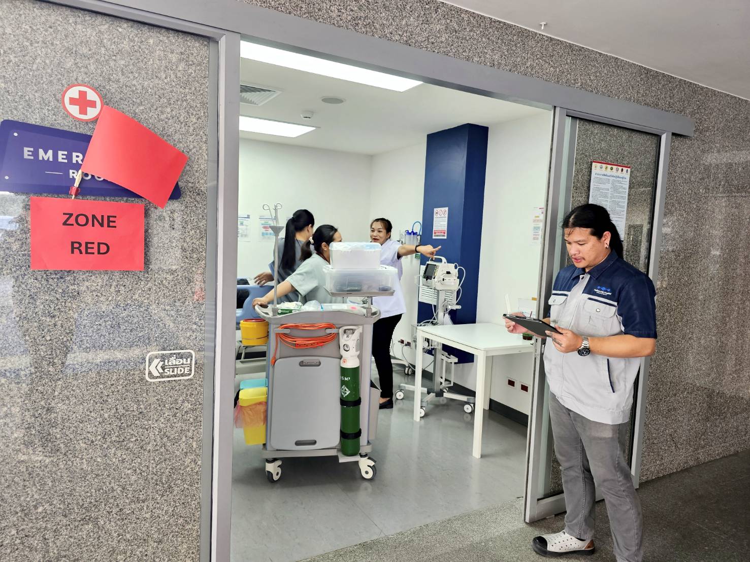 นอกจากการฝึกปฏิบัติแล้ว โรงพยาบาลยังให้ความสำคัญกับการประเมินความพร้อมในทุกด้าน ทั้งอุปกรณ์ทางการแพทย์ ระบบสนับสนุน ทีมแพทย์ พยาบาล และบุคลากร เพื่อให้มั่นใจว่าทุกกระบวนการสามารถดำเนินการได้อย่างรวดเร็ว ถูกต้อง และปลอดภัยในสถานการณ์จริง