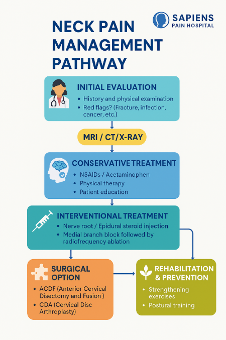 ผังแนวทางดูแลปวดคอ ตั้งแต่คัดกรอง ไปจนถึงการรักษาเฉพาะทาง