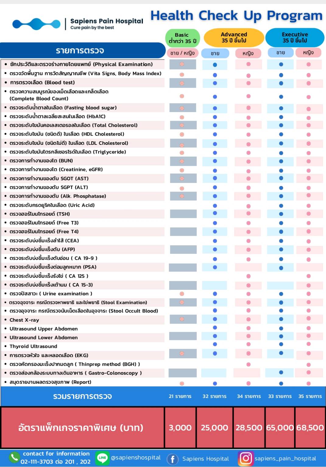 ✔ ใช้ได้กับแพ็กเกจตรวจสุขภาพทุกระดับ