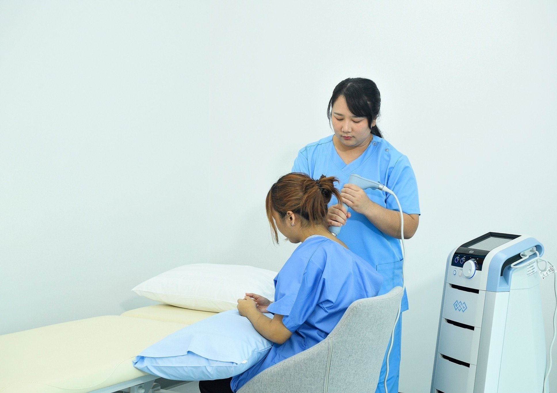 เป็นการรักษาโดยใช้คลื่นเสียงความถี่สูง ที่ทำให้เกิดความร้อนเข้าไปกระตุ้นกล้ามเนื้อชั้นลึก